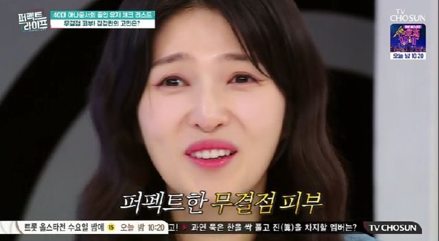 김경란은 "이런 얘기 들으면 약간 인생 드라마 같다. 사실 피부가 인생 최대의 고민이었다"라고 해서 주위를 놀라게 했다.