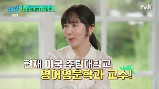 4일 방송된 tvN 유 퀴즈 온 더 블럭'(이하 '유퀴즈')에서는 해이가 게스트로 출연한 가운데 미국 주립대학교 영어영문학과 조교수로 재직 중인 근황을 밝힌 장면이 전파를 탔다.