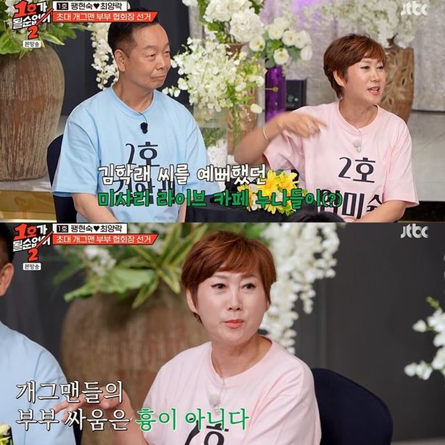 잠시뒤 개그맨 부부들의 애교 배틀이 펼쳐졌고, 임미숙은 김학래에게도 애교를 제안했다. 손민수는 “미숙 삐삐가 너무 예뻐서 나 듀금”이라고 대사를 읊어줬다. 그런데 임미숙은 “이거는 옜날에 삐삐로 바람을 피워가지고”라며 씁쓸해한다.