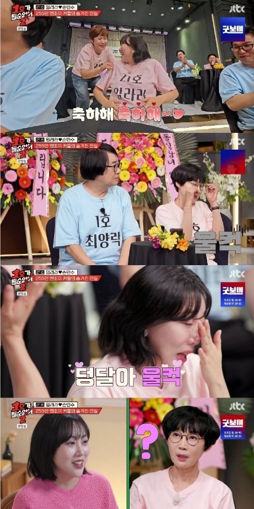 손민수는 "저번주에 양락 선배님이 결혼사진 보고 라라에게 왜 관리를 안 했냐'라고 말했다"며 눈물을 흘렸다. 최양락은 또 사과를 건넸다.