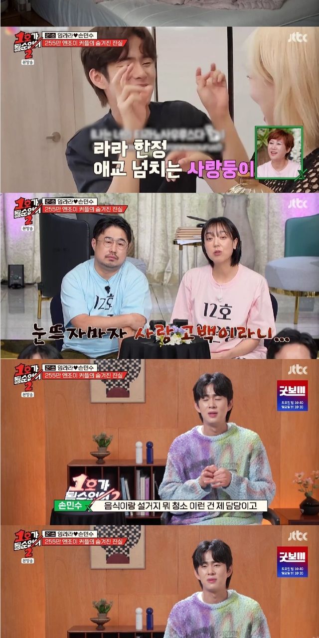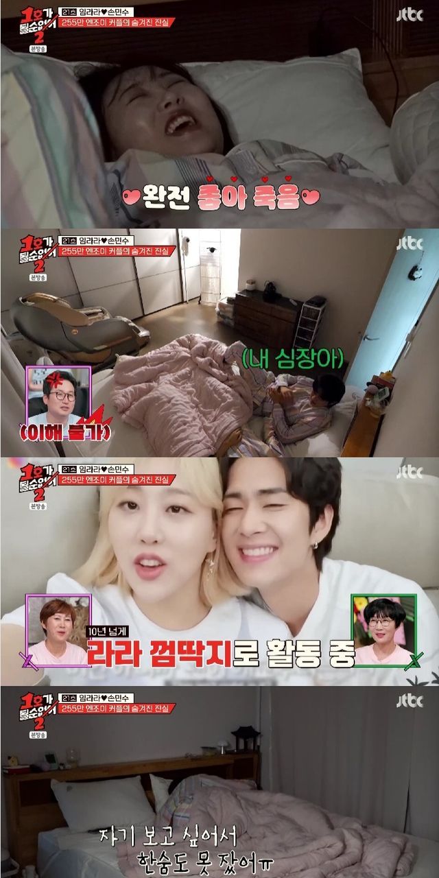 손민수와 임라라는 침대에서 꽁냥꽁냥하며 사랑을 고백했다.