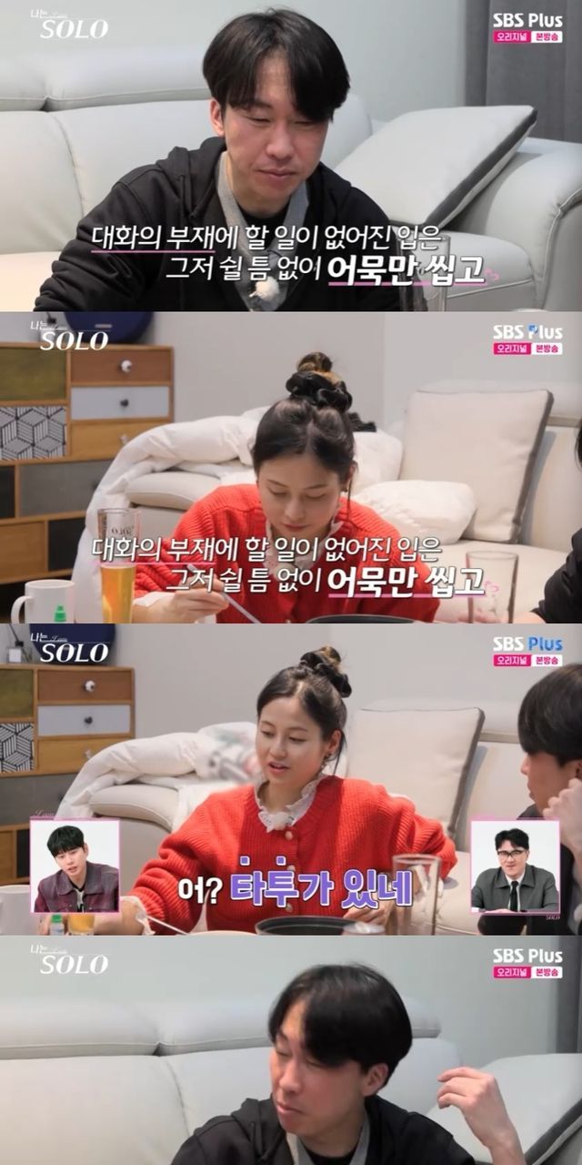 영수는 옥순의 타투를 발견했다. 보여달라는 말에 "좀 그렇지 않을까. 전국에"라며 꺼렸다. 영수는 "그냥 좀 놀라서. 타투가 있길래. 그 얘기도 그만하겠다"라며 사과했다.