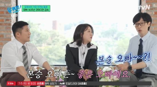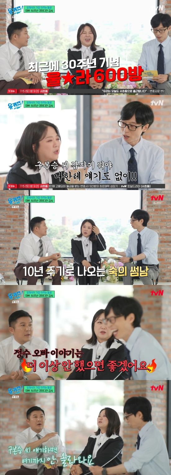 4일 방송된 tvN 유 퀴즈 온 더 블럭'(이하 '유퀴즈')에서는 김숙이 구본승과 러브라인에 대해 언급한 장면이 전파를 탔다.