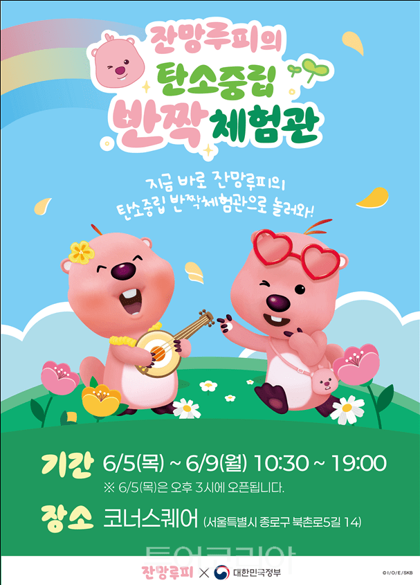 [투어코리아=유경훈 기자] ‘잔망루피’와 함께 탄소중립 체험하고 환경보호를 할 수 있는 ‘잔망루피’와 함께하는 탄소중립 반짝체험관이 오늘(5일)오후 3시, 서울 북촌(종로구 북촌로 5길 14 코너스퀘어 1층)에서 개관, 9일까지 운영된다.