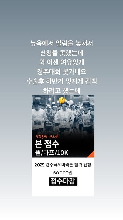4일 진태현은 자신의 계정에 "뉴욕에서 알람을 놓쳐서 신청을 못했는데 이젠 여유있게 경주대회 못 가네요"라며 자신이 신청하고자 했던 마라톤 접수가 마감됐음을 밝혔다.