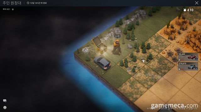 정중재 사업실장: 다키스트 데이즈에는 쉘터와 커뮤니티에 주민을 데려와 성장시키는 시스템이 있다. 주민원정대는 그 시스템의 실제 활용처로, 주민을 내 차에 태워서 황야로 보낸 뒤 모험하는 콘텐츠다. 보드게임같은 요소라 생각하시면 이해가 쉽다. 무작위로 지도와 이벤트가 생성되고, 각 칸에서 랜덤 전투, 보상 아이템 등이 등장한다.