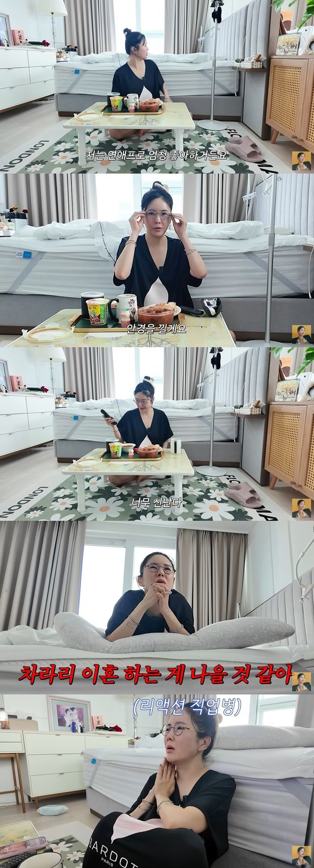 그는 "너무 신난다"며 연애 프로그램을 시청했고, 특히 JTBC '이혼숙려캠프'를 보던 장영란은 두 부부의 싸움에 "차라리 이혼 하는 게 나을 거 같다. 이러다 이상해진다. 죄송하지만 이혼해야 된다"고 과몰입 리액션을 보였다.