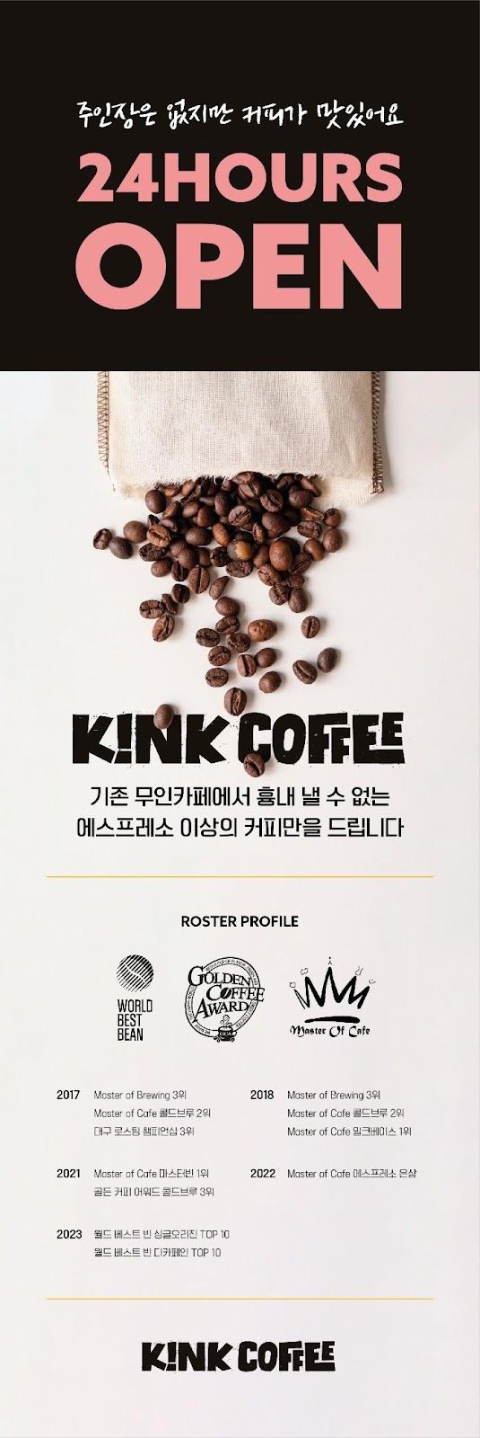 남양주: 남양주 평내동에서 킨크커피를 두 군데 운영하는 신창은입니다. 아파트 상가 내 무인 매장이 문을 닫은 걸 보고, 문득 ‘커피머신 하나 놓으면 24시간 운영되는 무인카페를 해볼까?’ 하는 생각이 들었죠.