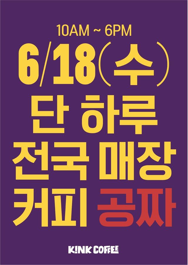 6월 셋째주에 킨크커피에서 프리 커피 데이 행사를 하는데요. 그날 하루 고객들에게 아메리카노를 무료로 나눔합니다. 행사 관련 모든 비용과 당일 매출을 본사에서 지원해 주는데요. 무인카페라 점주들이 행사 시간 내내 상주하기가 힘든데, 본사 직원들이 도와주러 온다고 합니다. 무료 커피 행사를 통해 신규 고객들이 오시면 무조건 재방문할 수밖에 없다고 생각하거든요. 커피랑 음료엔 자신이 있어요. 그런 행사와 지원 정책도 큰 도움이 됩니다.