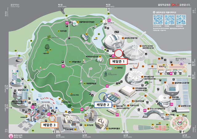 올림픽공원 내 KSPO DOME, 벨로드롬, 소마미술관 등 총 3개소에 걸쳐 설치된 '배달존'은 각각 가로 5m, 세로 3m 규모의 도색으로 표시되며 현장에 배치된 안내 배너를 통해 누구나 쉽게 찾을 수 있다.