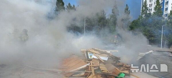 뉴시스 보도에 따르면, 5일 경북소방본부에 따르면 이날 오후 3시43분께 포항시 남구 연일읍 유강리 유강정수장 내 건축 폐자재에서 화재가 발생했다.