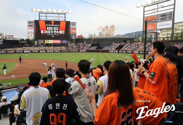 한화는 지난 시즌에 이어 이번 시즌에도 팬들과 함께 연속 홈경기 매진 KBO 신기록을 쓰고 있다. 한화는 2023년 10월 16일 대전 롯데전부터 2024년 5월 1일 대전 SSG전까지 17경기 연속 홈경기 매진으로 KBO 신기록을 썼는데, 한 시즌 만에 직접 이 기록을 갈아치웠다.