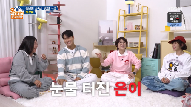 김숙 역시 “우는 게 창피해서 나간 것 같다”며 “미안해서 (송은이를) 잡았다. 그러니까 ‘알았다’고 하더니 침대에 눕더라. 나중에 방에 가보니까 눈물 자국이 난 채로 자고 있었다”고 폭로해 웃음을 안겼다.