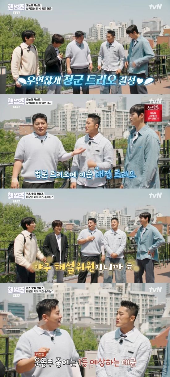 이이경이 언급한 게스트는 김태균이었다. 김태균은 김동현과 오상욱과 같은 청색 옷을 입고 있었고, 이이경은 "운동부는 뭐 얘기가 된 거냐"라며 너스레를 떨었다. 김태균은 "말 안 해도 통하는 게 있다. 더 잘 통하는 게 저희 대전 출신이다"라며 전했다. 차태현은 "안 되겠네. 그냥 팀 해야겠네"라며 거들었다.