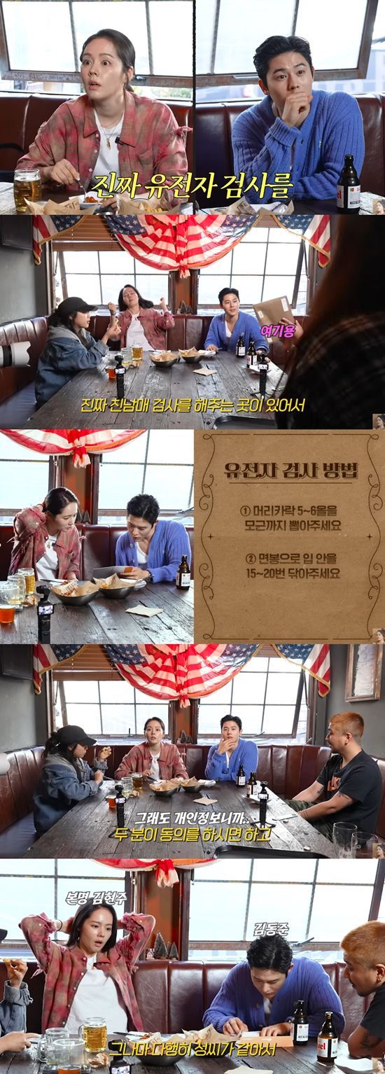 계속되는 '닮은꼴' 이야기에 제작진은 "진짜 유전자 검사를 (준비했다). 진짜 친남매 검사를 해주는 곳이 있다"며 깜짝 제안을 했다. 이에 한가인과 김동준은 머리카락을 뽑고, 입안을 면봉으로 문지르는 등 적극적으로 검사에 임했다. 한가인은 "잃어버린 형제를 찾아서. (내가) 밥 사준다고 불러서 머리를 뽑고 있다"고 너스레를 떨어 폭소를 유발했다.