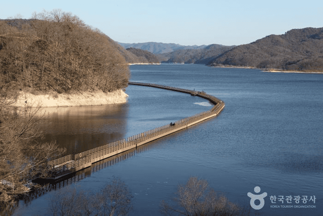 예끼마을과 호반자연휴양림을 연결하는 약 1km의 선성수상길은 물 위를 걷는 듯한 묘한 느낌을 줍니다. 안동호 조성 시 수몰된 예안면의 역사적 흔적도 엿볼 수 있으며, 잔잔한 호수 풍경을 감상할 수 있습니다.