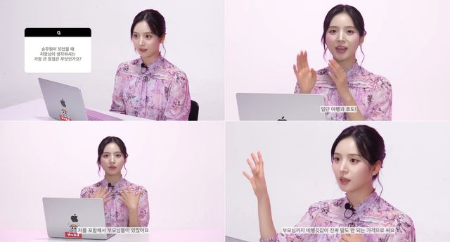 승무원이 갖춰야 할 마인드 중 가장 중요한 것이 무엇인지 묻자, “기본적으로 사람을 좋아하고 호기심이 많아야 하는 것 같다. 성격 자체가 사람을 좋아하면 응대하는 게 덜 피로할 것 같다”고 이야기했다.