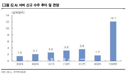 박상현 한국투자증권 연구원은 “이번 실적에서 가장 주목할 부분은 AI 서버”라며 “1분기 신규 주문량은 121억달러로 확인되는데 이는 작년 전체 AI 서버 출하량 실적(111억달러)보다 큰 규모다”고 설명했다. 이에 “1분기 기준 수주 잔고 144억달러를 고려할 때, 올해 동사의 AI 서버향 목표 매출액 150억달러는 충분히 달성 가능한 목표”라고 진단했다.