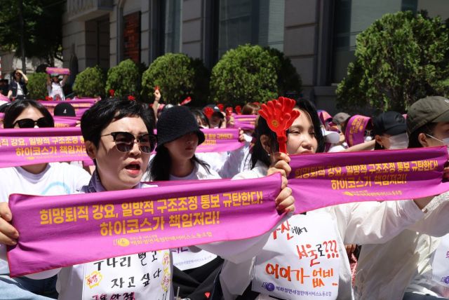 공항의 특성상 근무시간이 새벽 6시 반부터 밤 9시 반까지 이어지기 때문에, 각 매장에 6~7명은 있어야 조 편성이 제대로 됩니다. 스케줄을 짜려면 휴무, 반차, 병가까지 고려해야 하잖아요. 노조가 보기에는 부산 인력을 김해로 배치하면 매장 운영도 원활해지면서 매출도 올라가고, 고용 문제도 해결되는 ‘두 마리 토끼’ 해결책입니다. 그런데 회사는 딱 5명만 김해로 보내고, 나머지는 '서울이나 인천공항 매장으로 가라'는 식입니다.