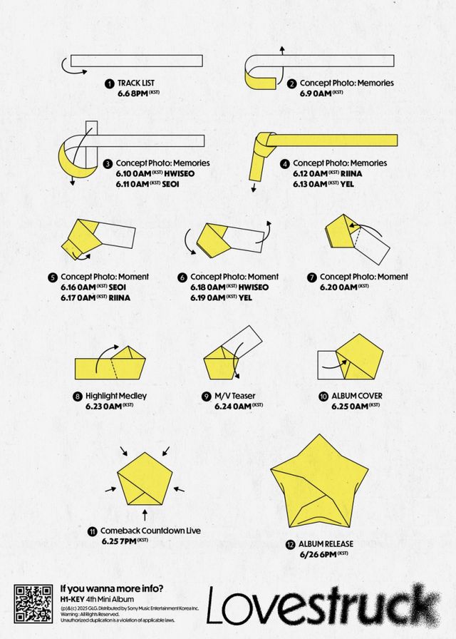 종이접기 콘셉트로 구성된 프로모션 캘린더에는 별을 접는 과정을 따라 하이키의 컴백 일정이 담겨있다. 특히 하이키의 신보 콘셉트를 미리 엿볼 수 있어 벌써부터 리스너들의 호기심을 자극한다.