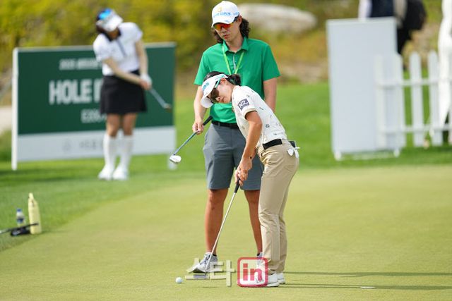 1라운드를 끝낸 박민지는 다시 연습 그린으로 향했다. 오후 들어 기온이 올라가면서 섭씨 29도의 뙤약볕이 쏟아져 그린에는 선수가 몇 명 없었다. 박민지는 30~40분 정도 퍼트 연습했다. 홀을 중심으로 짧게는 2~3m부터 4~5m 이상의 거리를 이동하며 공을 굴렸다. 내일을 위한 준비였다.