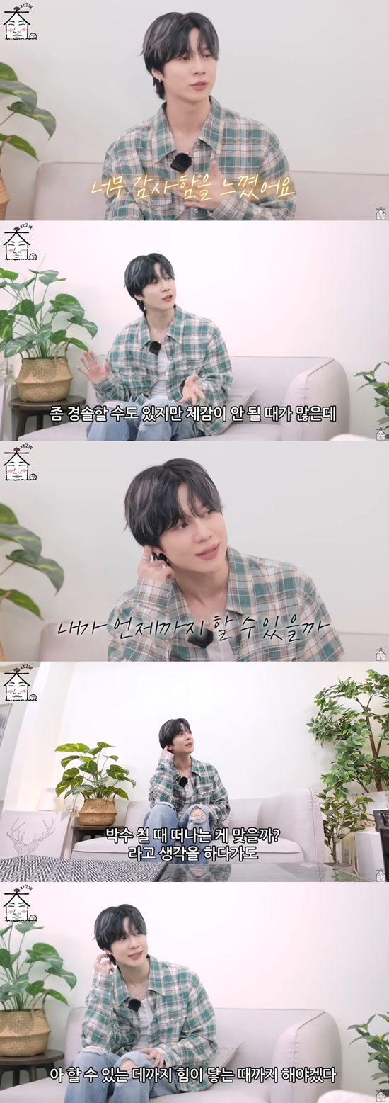 태민은 "저는 이 이야기들을 주변에 좋은 분들이 많이 있어서 할 수 있는 사람들은 있다. 그런데 이런 얘기들을 알아줄 수 있는 사람들은 같이 오랫동안 활동을 해 본 사람들이다. 이런 얘기를 나눌 수 있는 게 너무 감사하다"며 울컥하는 모습을 보였다.