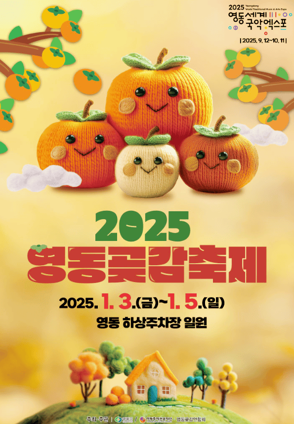 겨울의 대표 간식으로 곶감이 빠질 수 없죠. 충북 영동은 품질 좋은 감이 자라는 곳으로 유명합니다. 이곳에서 2025년 1월 3일부터 5일까지 ‘영동곶감축제’가 열립니다. 축제 장소는 영동전통시장 옆에 위치한 하상주차장 일원이며, 맛있는 먹거리와 다양한 볼거리로 가득 차 있어 겨울 여행지로 훌륭한 선택입니다.