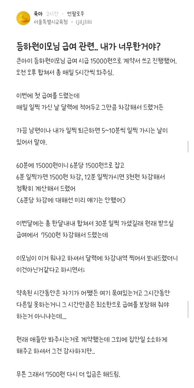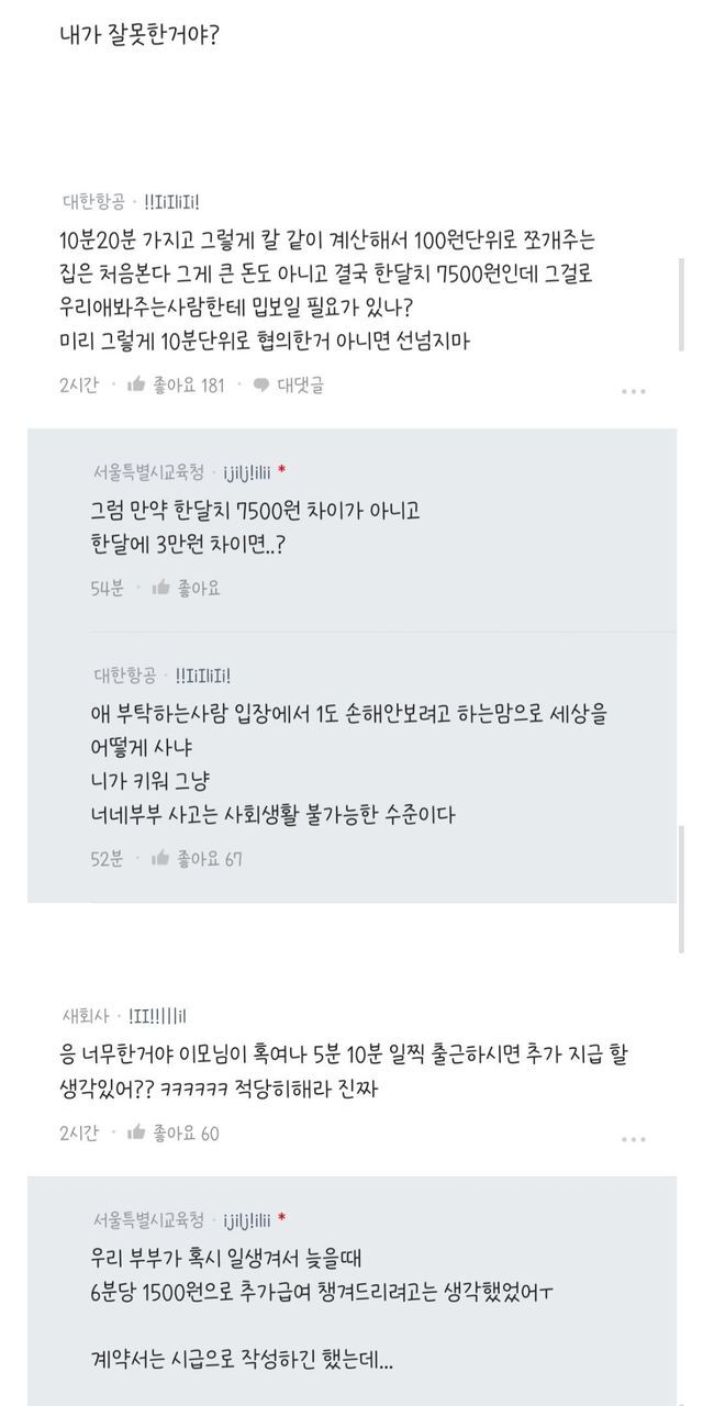 등하원 이모님 급여 관련.. 내가 너무한거야?