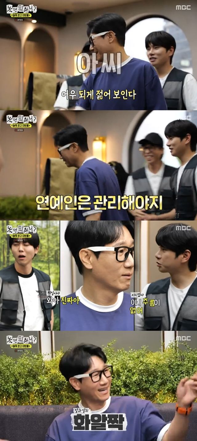 이어 지석진이 등장했고, 지석진은 "너희 어려워? 왜 이렇게 돌아다녀"라고 말해 웃음을 안겼다. 지석진을 본 주우재는 곧바로 "형님 뭐 시술받으셨어요?"라며 칭찬하기 시작했다.
