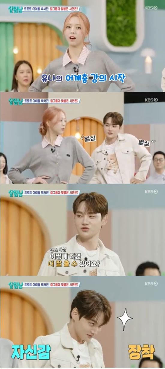 (엑스포츠뉴스 원민순 기자) 있지 유나가 박서진에게 어깨춤을 전수했다.