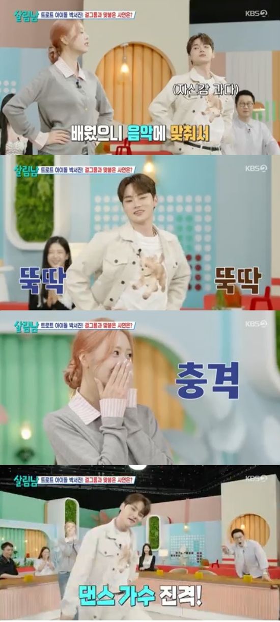 박서진은 "그것도 있잖아요"라며 있지의 '워너비' 어깨춤을 언급했다.
