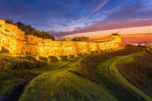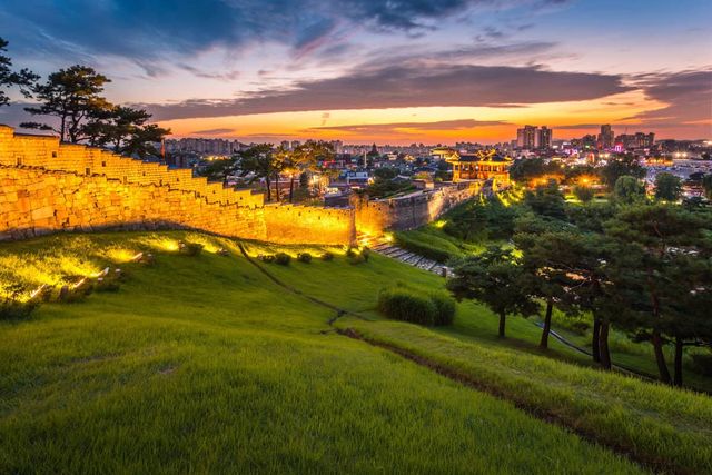 해가 지면 수원화성의 새로운 매력이 드러납니다. 조명이 비추는 성곽과 그림자는 신비로운 매력을 더합니다. 행궁동 골목은 작은 전구들이 켜져 더욱 아늑해집니다. 밤하늘 아래 빛나는 성곽을 걷다 보면 역사를 간직하고 있는 도시의 낭만을 느낄 수 있습니다.