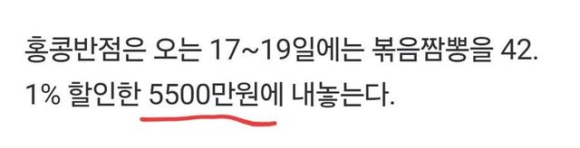 볶음짬뽕 42.1% 할인해서한 그릇에 5,500만원 ㄷㄷㄷ