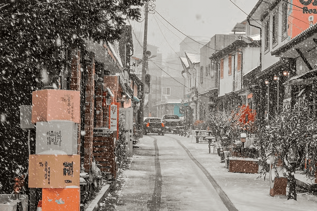 특히 눈 내린 마을호텔 18번가는 겨울의 특별한 정서를 제공합니다. 눈 덮인 지붕과 바람 속에서도 웃음을 짓는 사람들은 한겨울에도 온기를 전달합니다. 마을 인근 신촌마을이나 생활체육공원을 찾아 소소한 산책도 즐길 수 있습니다.