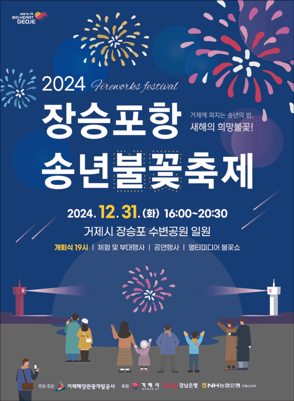 1년을 보내며 어디서 어떤 시간들을 보낼지 고민이 되시나요? 12월 31일 거제도의 장승포항에서는 한 해를 마무리하고 새해를 맞이하는 특별한 송년 불꽃축제가 열립니다. 이 행사는 매년 많은 사람들에게 기대를 모으며, 불꽃을 통해 지나간 시간을 되새기고 새롭게 시작하는 순간을 만듭니다.