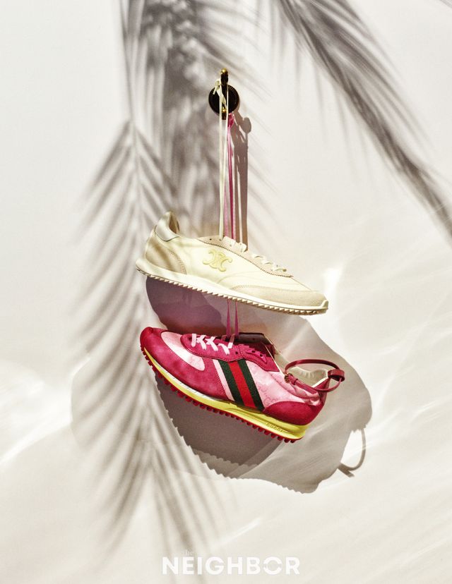 Celine 나일론과 스웨이드 카프스킨 소재를 믹스한 트리옹프 로고 스니커즈 가격 미정.