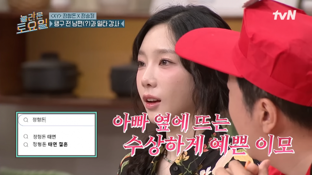 7일 방송된 tvN 예능 ‘놀라운 토요일’에는 정형돈과 정승제가 게스트로 출연했다. 이날 정형돈은 태연과의 관계에 대해 “딸들이 아빠 검색어에 태연이 나오니까 ‘이 이모랑 어떤 사이냐’고 묻더라. 뭐라고 설명해야 할지 모르겠다”고 고백해 웃음을 자아냈다.