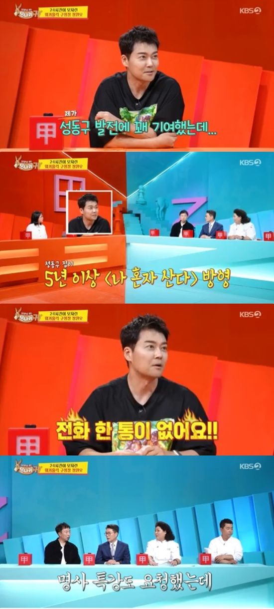 전현무는 자신도 정원오에게 서운한 점이 있다고 했다. 전현무는 성동구에서 5년 넘게 살면서 '나 혼자 산다'를 통해 성동구가 많이 나왔다고 했다.