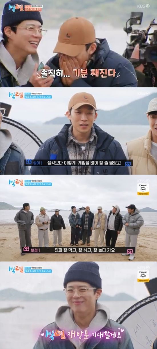 8일 방송된 KBS 2TV '1박 2일 시즌4'에서는 김종민, 문세윤, 조세호, 이준, 딘딘, 유선호가 박보검, 이상이와의 전남 여수 여행을 마무리하는 모습이 전파를 탔다.