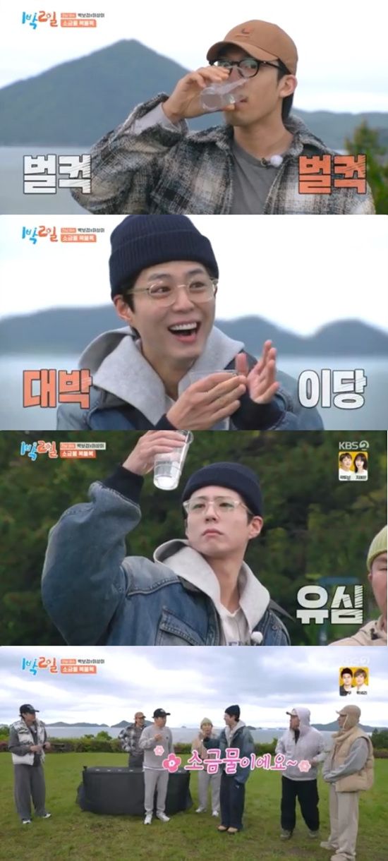 박보검과 김종민은 동시에 각자 고른 물을 마셨다. 두 사람 모두 표정이 평온했는데 소금물은 박보검이 마신 것으로 드러났다.