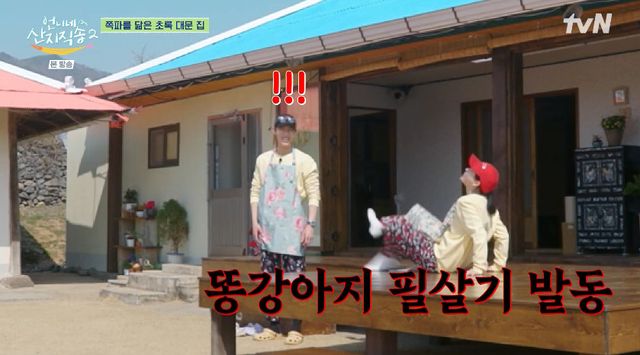 쪽파밭에서 본격적인 작업을 시작하기 전 멤버들은 꽃이 그려진 앞치마 작업복으로 갈아입었고, 이재욱은 가장 먼저 환복하고 나와 "뭔가 느낌이 좋은데"라며 기분 좋은 모습을 보였다.