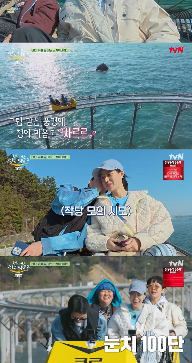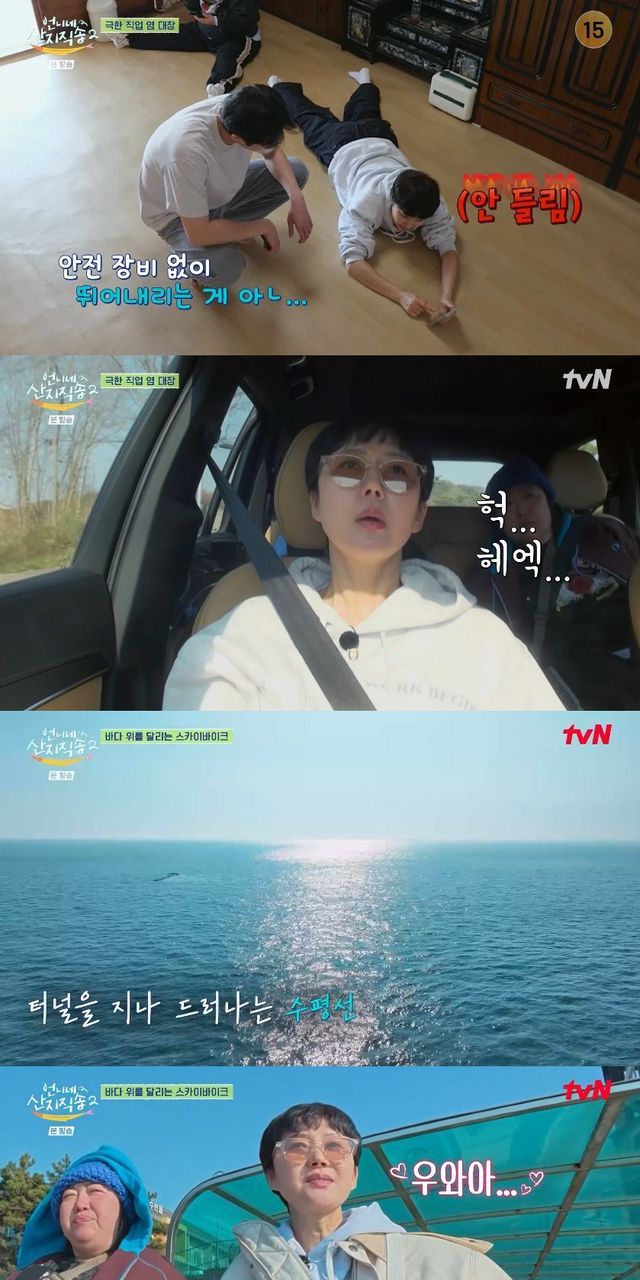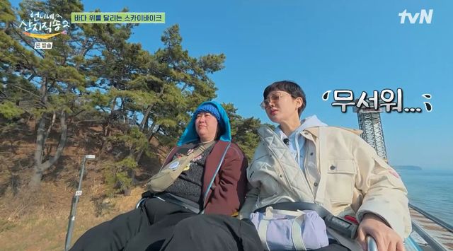 집라인을 무서워하는 염정아를 위해 스카이바이크로 변경했지만, 염정아는 긴장한 기색을 드러내며 "별걸 다 한다"라고 무서운 마음을 드러냈다.