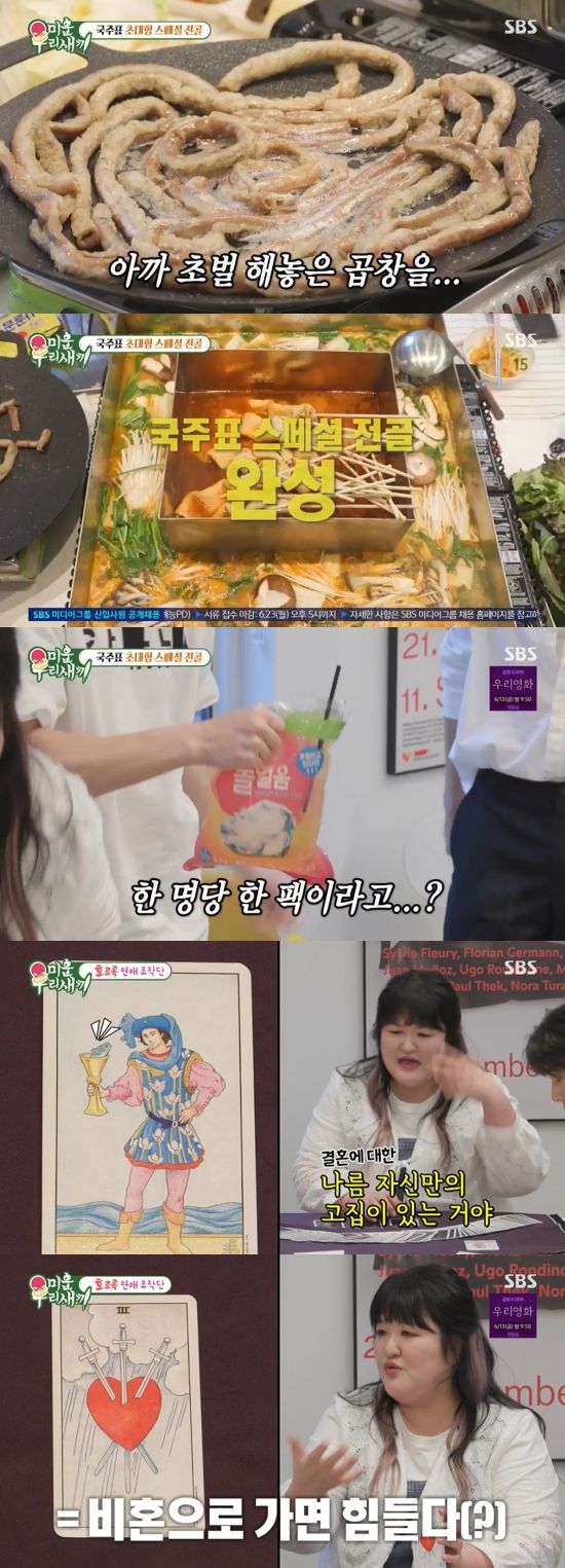 먼저 이국주는 기름에 한우 곱창을 초벌했다. 최진혁과 윤현민은 "치킨 튀기는 냄새가 난다"며 신기해했다. 이어 총 네 개의 가스레인지에 초대형 전골 냄비가 등장했다.
