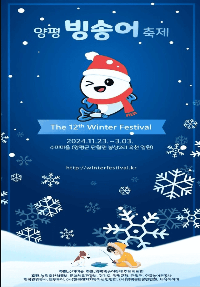 남한강변에서 열리는 이 축제는 스케이트, 눈썰매, 얼음 낚시 등 가족 모두 즐길 거리가 풍성합니다. 빙송어를 직접 잡아 바로 요리해 먹는 경험은 겨울에만 느낄 수 있는 특별한 즐거움입니다.