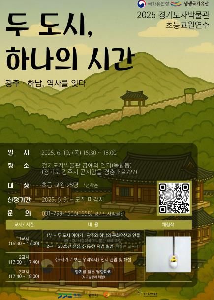 이번 프로그램은 국가유산청과 광주시가 주최하고 경기도자박물관이 주관하는 ‘2025년 생생 국가유산 사업’ 중 하나다. 지역의 역사와 문화유산에 대한 교사들의 교육 역량을 강화하고 이를 교육 현장에 효과적으로 활용할 수 있도록 지원하기 위해 기획됐다.