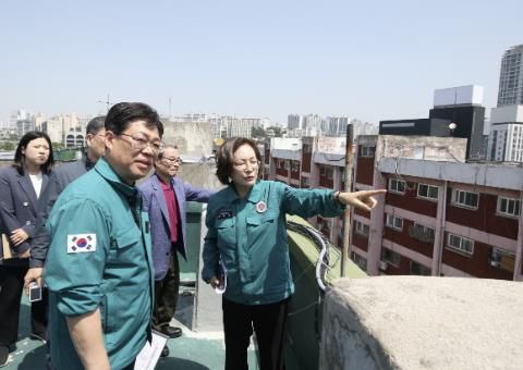 중산시범아파트는 1996년부터 안전등급 D등급의 노후건축물로 관리되고 있다. 박 구청장은 현장에서 ▲지반침하 ▲균형 ▲변형 발생 여부 등 구조적 안정성을 중심으로 점검을 실시했다.