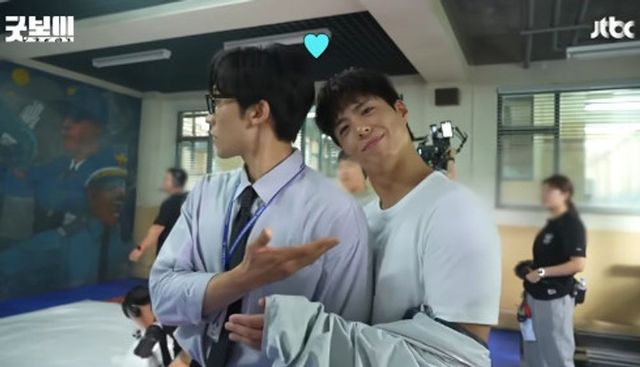 [TV리포트 = 하수나 기자] 배우 박보검이 ‘굿보이’ 촬영 현장에서 극중 라이벌 종현 역을 맡은 이상이를 향해 애교 가득한 하트 고백을 날리며 애정을 드러냈다.