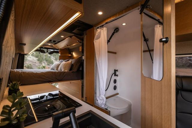 욕실 공간도 주목할 만하다. 고정형 카세트 변기와 샤워기, 거울, 티크 우드 발판이 포함됐고, 냉기 유입을 막는 전용 난방 시스템이 설치돼 겨울철에도 따뜻한 샤워가 가능하다. 욕실 옆에는 150리터 냉장고가 있어 장거리 여행에도 불편함이 없다.