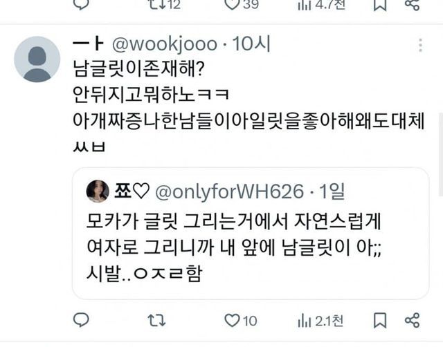 또 아이돌 멤버가 '글릿'을 여자로 그리니
