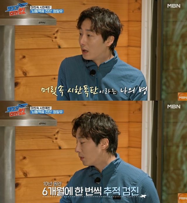 27살에 뇌동맥류 진단을 받아 큰 화제와 걱정을 받았던 정일우는 "20대 때 한창 일하다가 뇌동맥류 진단을 받았다. 눈앞이 깜깜해지더라"라고 운을 뗐다.